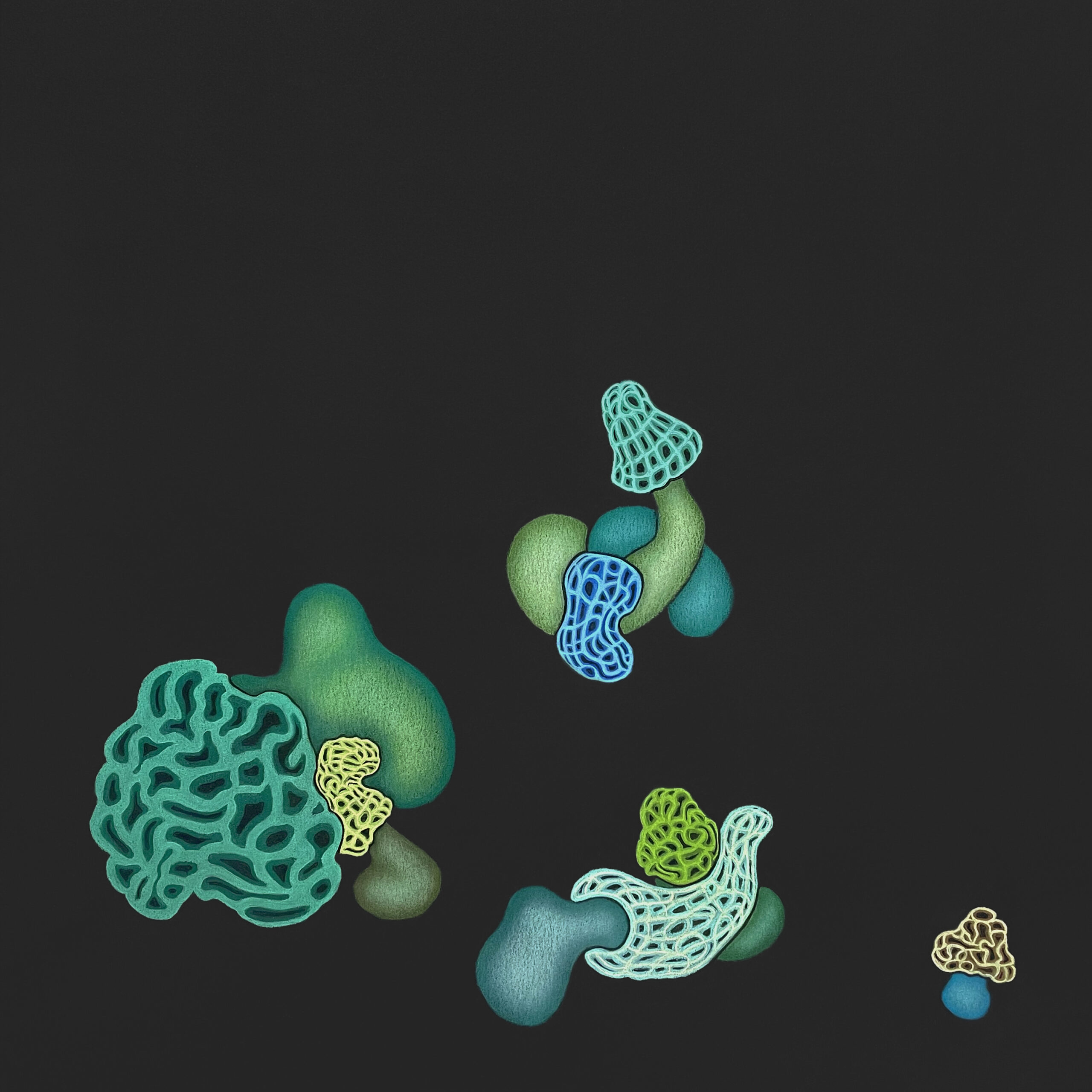 Pastel on black paper, 40 × 40 cm