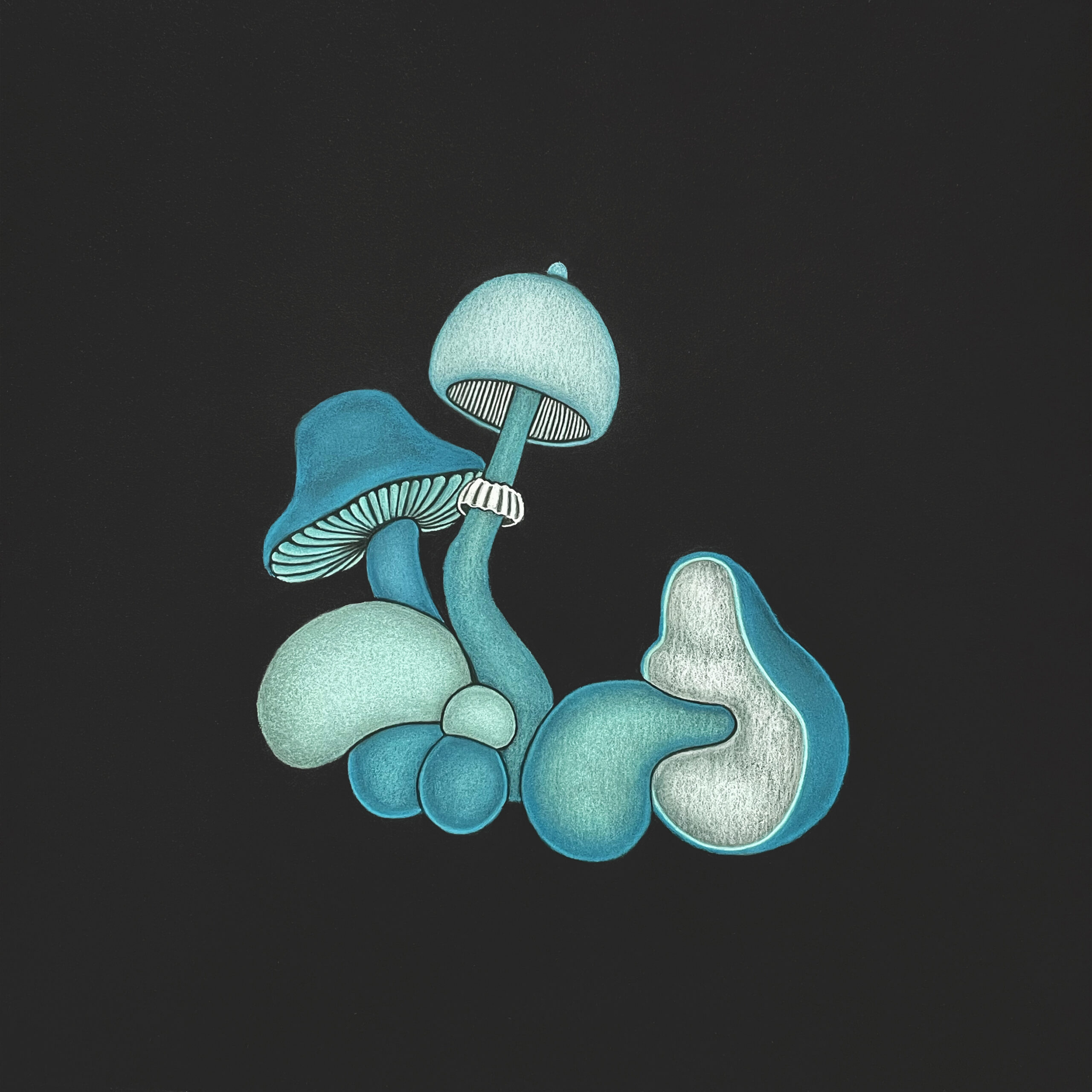 Composition with 2 mushroom fruiting bodies